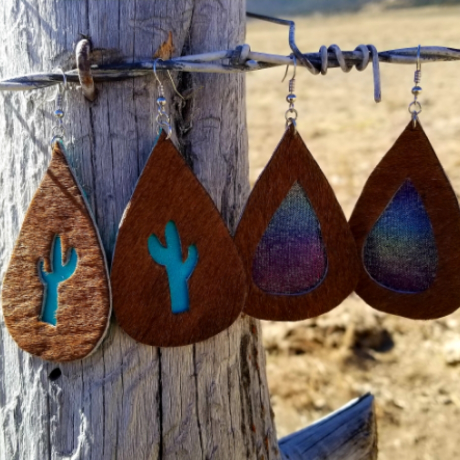 Cowhide with 6 different cutout shapes and many difavailableferent color backing .